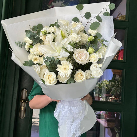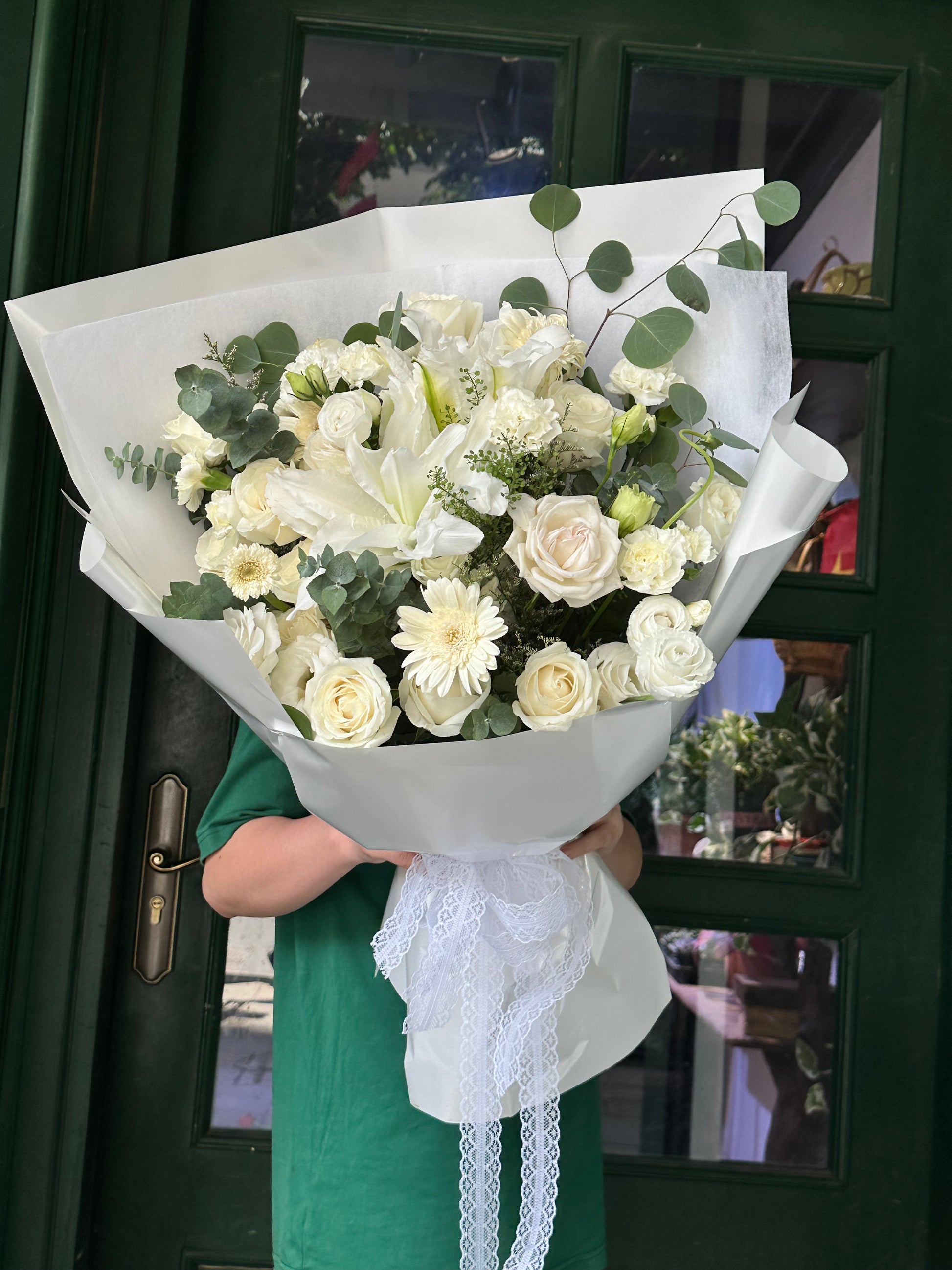 Lưu ý: Hình mẫu mà các bạn thấy là mẫu tham khảo. Vì hoa là “nàng thơ theo mùa”, đôi khi một vài loại sẽ tạm vắng hoặc chưa đạt chuẩn tươi xinh nhất. Khi đó, Flory sẽ khéo léo thay thế bằng những loại hoa tương đương, vẫn đảm bảo đúng tone màu, kiểu dáng và độ đầy đặn chuẩn chỉnh như hình. Chúng mình luôn gửi ảnh thực tế của bó hoa trước khi giao, và chỉnh sửa kip thời theo yêu cầu, để các bạn yên tâm rằng món quà đến tay vẫn đẹp, tinh tế và trọn vẹn cảm xúc nhất.